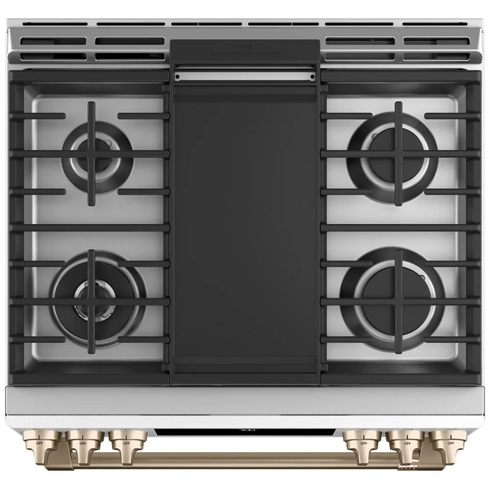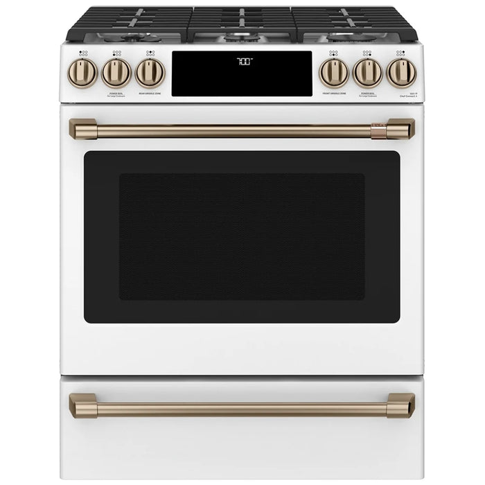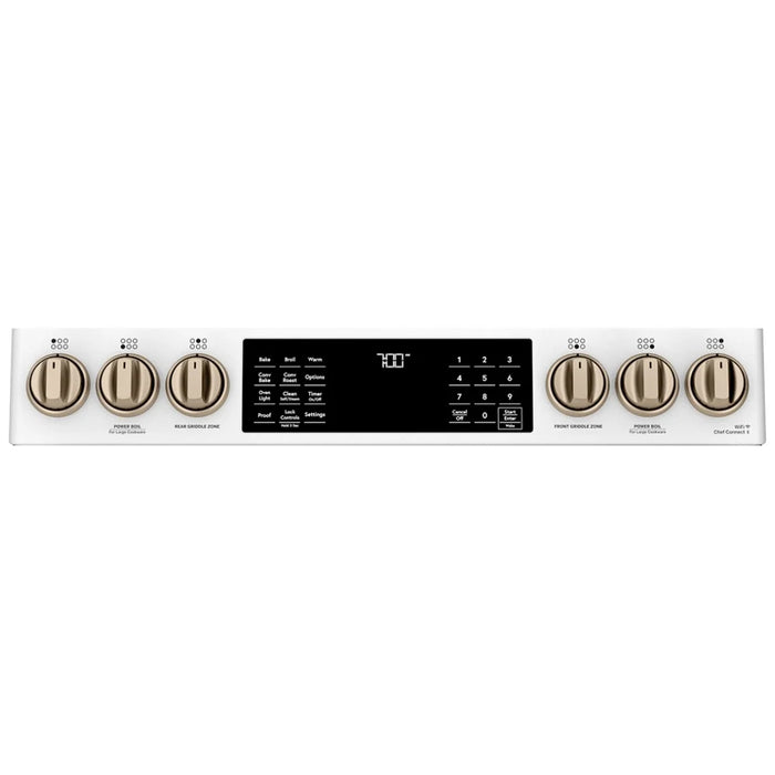 Entertaining for large groups is easy with the industry's first six burner, edge-to-edge cooktop that can accommodate cookware of all sizes and a cast-iron integrated griddle that provides enough room to perfectly flip crab cakes.