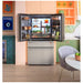 This sophisticated refrigerator with built-in WiFi allows users to expand on its convenient features and receive alerts when connected to the SmartHQ App.