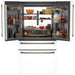 This sophisticated refrigerator with built-in WiFi allows users to expand on its convenient features and receive alerts when connected to the SmartHQ App.