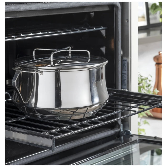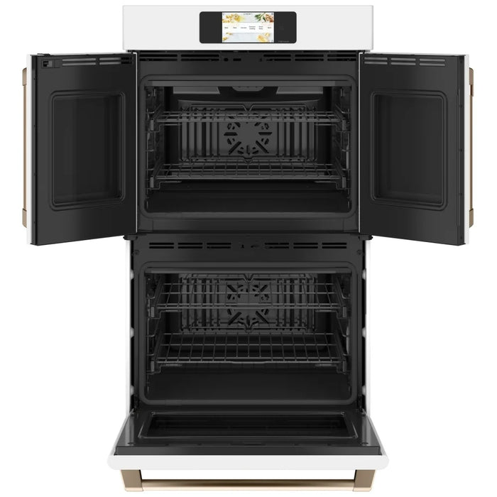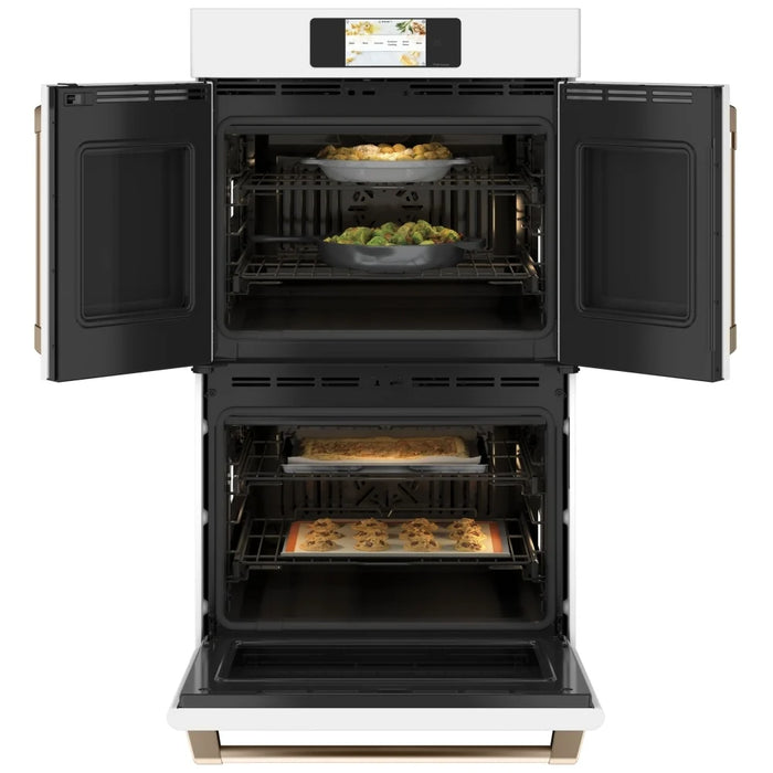 Cafe CTD90FP4NW2 Double Wall Oven, 30 inch Exterior Width, True Convection (Both Ovens), Self Clean, 10 cu. ft. Capacity, Temperature Probe, Wifi Enabled, Matte White colour Air Fry; True European Convection;Telescopic Gliding Extension Rack