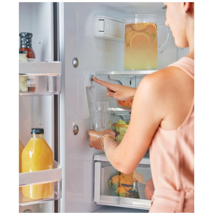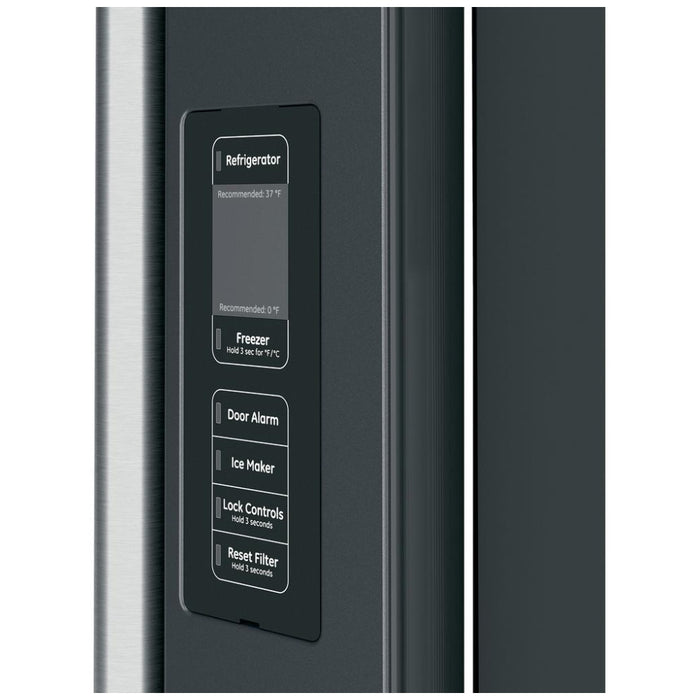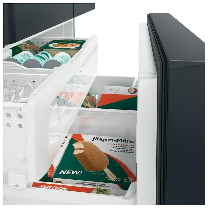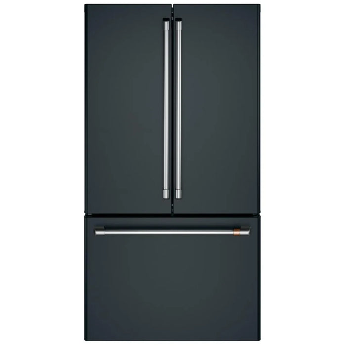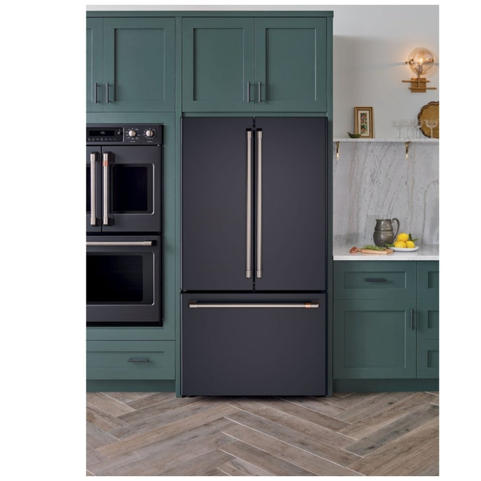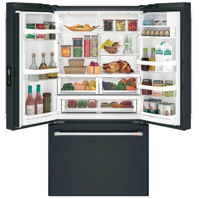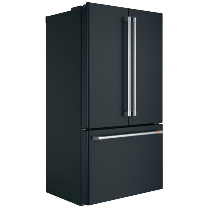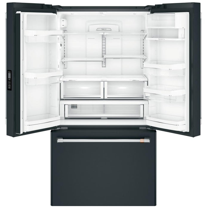 Cafe CWE23SP3MD1 French Door Refrigerator, 36 inch Width, ENERGY STAR Certified, 23.1 cu. ft. Capacity, Counter Depth, Water Dispenser (Interior), Ice Dispenser (Freezer Located), Matte Black colour TwinChill Evaporators, Quick Space Shelves