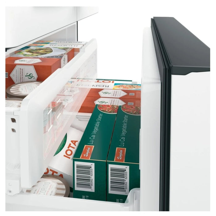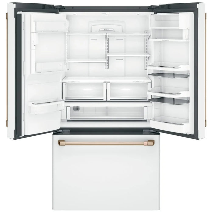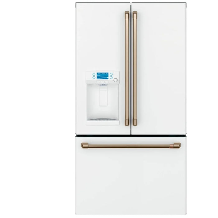 Cafe CYE22TP4MW2 French Door Refrigerator, 36 inch Width, ENERGY STAR Certified, 22.1 cu. ft. Capacity, Counter Depth, Water Dispenser (Exterior), Ice Dispenser (Thru Door), Matte White colour Hot Water Dispenser,FrostGuard