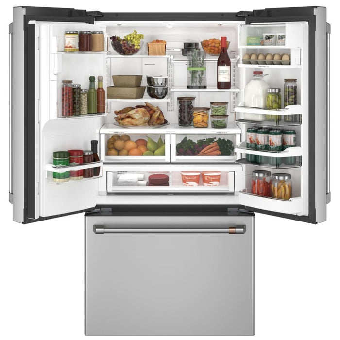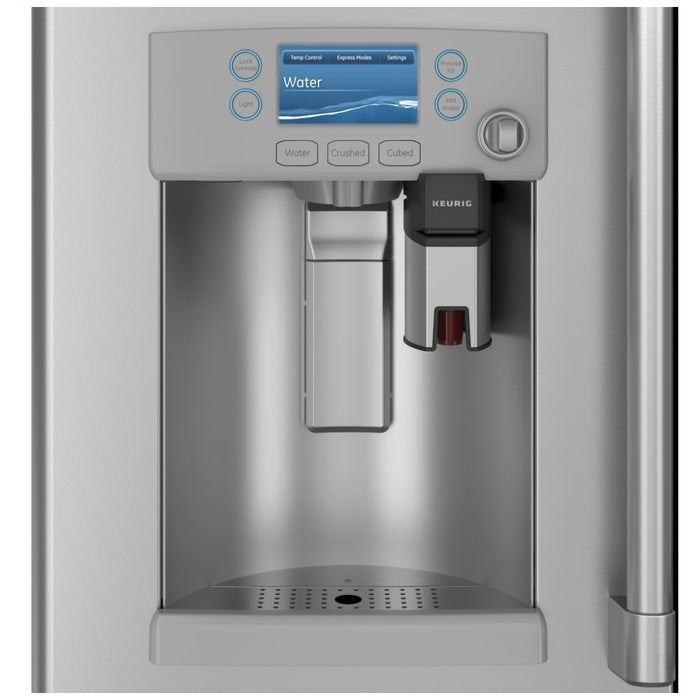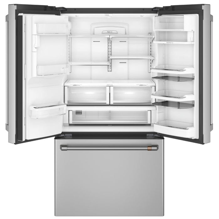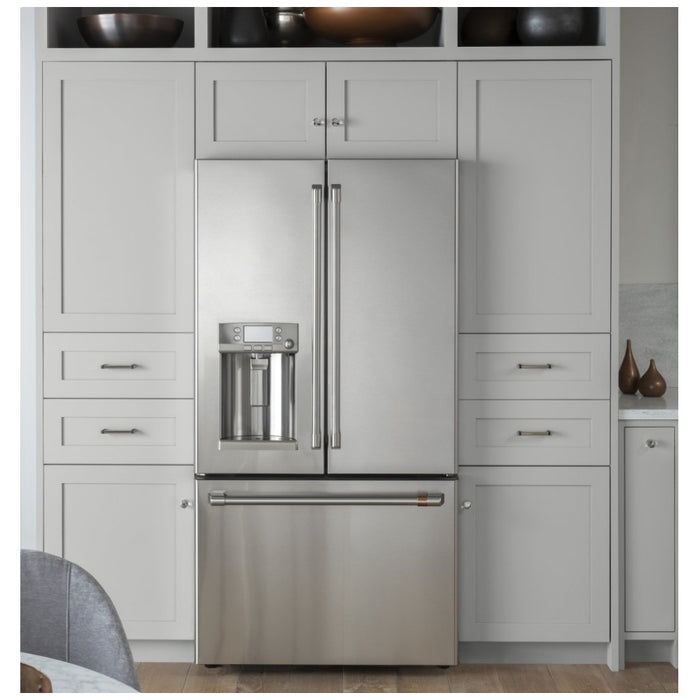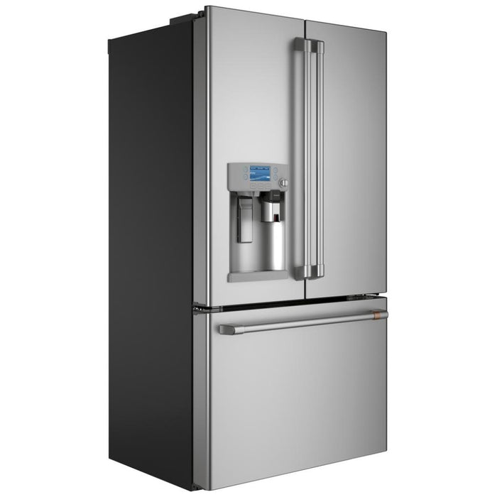 Cafe CYE22UP2MS1 French Door Refrigerator, 36 inch Width, ENERGY STAR Certified, 22.2 cu. ft. Capacity, Counter Depth, Ice Dispenser (Thru Door), Stainless Steel, Keurig K-Cup Brewing, FrostGuard, Hot Water Dispenser, TurboFreeze