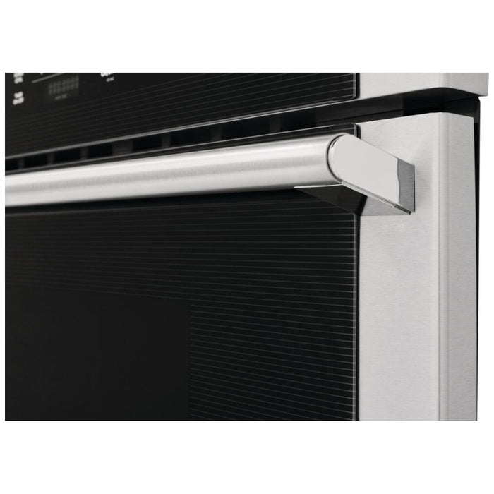 • The sleek design of this microwave with glass touch controls, stainless steel handle with gunmetal chrome standoffs and Electrolux signature pinstripe design looks beautiful in any kitchen.