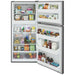 This Frigidaire 18 cu. ft. top freezer refrigerator includes spacious interior storage options designed for busy families, including generous door bins, adjustable full-width glass shelving, and a sliding deli drawer. Our humidity-controlled crispers keep produce fresh for longer, allowing you to waste less and save money.